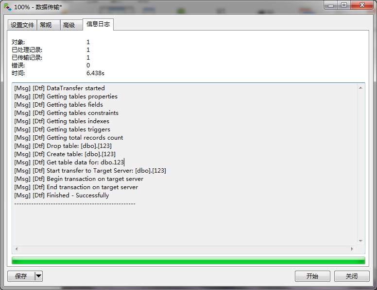 輸入目標數據庫名及模式(為dbo),點(diǎn)擊開(kāi)始。